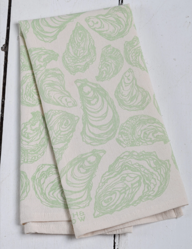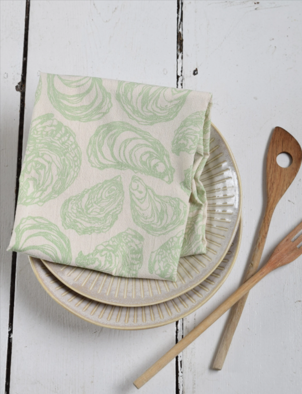 Organic Cotton Oyster Tea Towel - Green