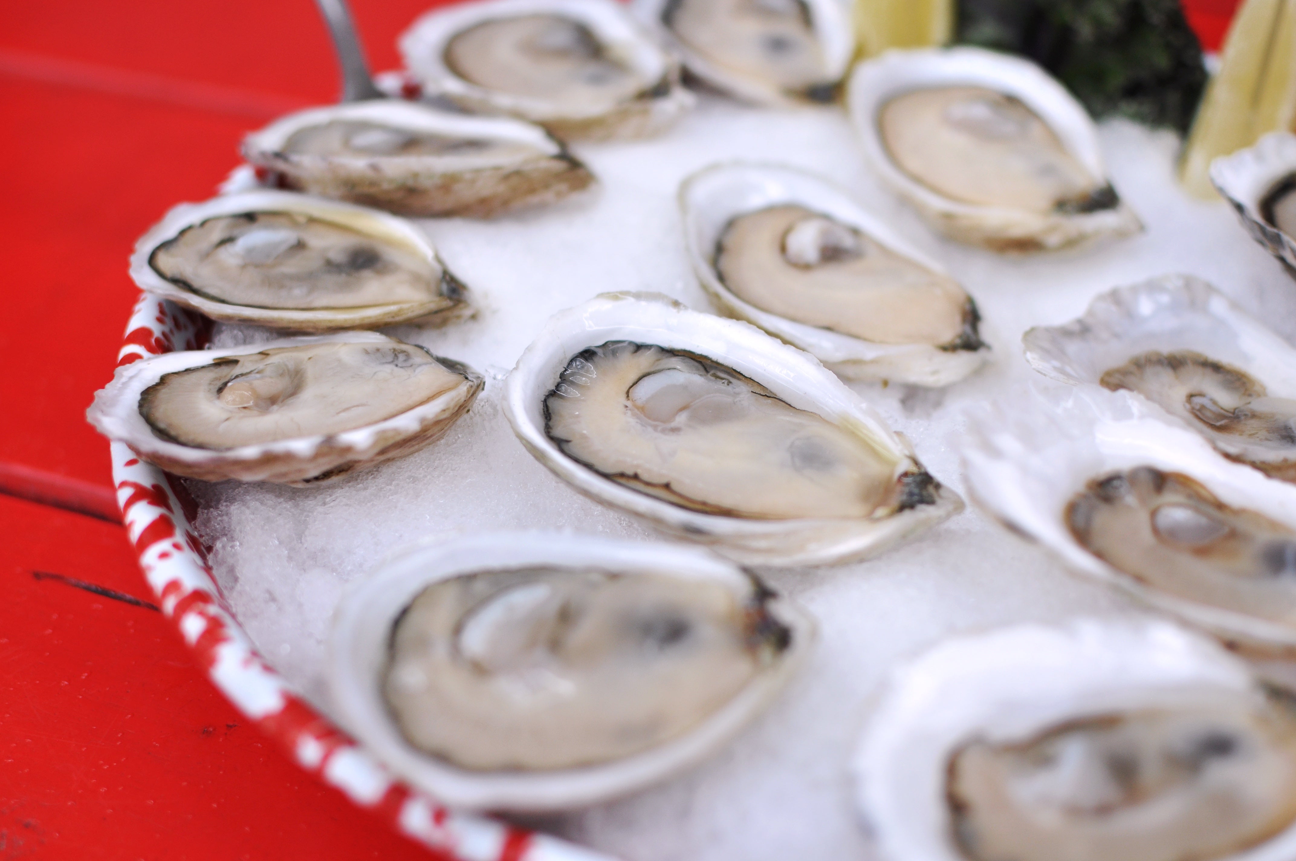 Examine how your oysters are presented. Look for signs of spacing, grouping, and freshness. Grouping oysters by variety or providing a description of each shows an effort in helping you distinguish varieties. The ice or bedding should support the oysters evenly on the shell so you’re maintaining the oyster’s unique liquor content (in other words, an oyster should not be swimming in water before it arrives to your table). And lastly, keep an eye out for anything that looks too dry. Your oysters should always look glassy and smell of sea breeze.